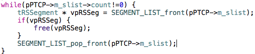 執行程式,錯誤發生時,會停在中斷點,此時已經可以知道問題與 pPTCP->m_slist 有關